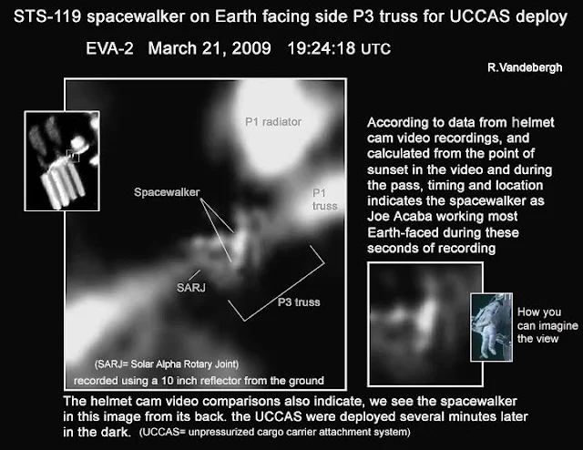 Las imágenes permiten distinguir al astronauta Joe Acaba mientras realizaba el paseo exrtavehicular sobre los cielos de Dinamarca.